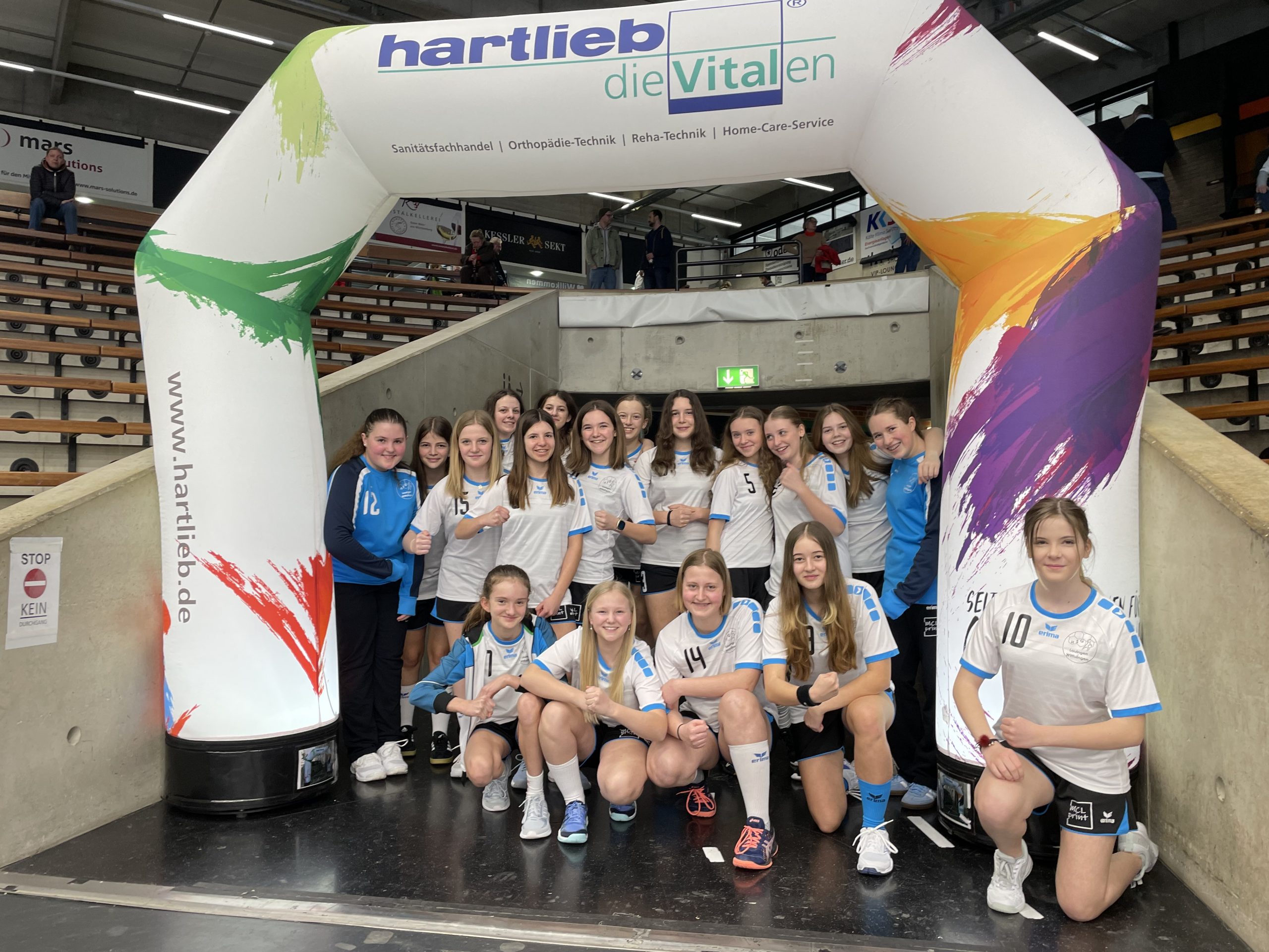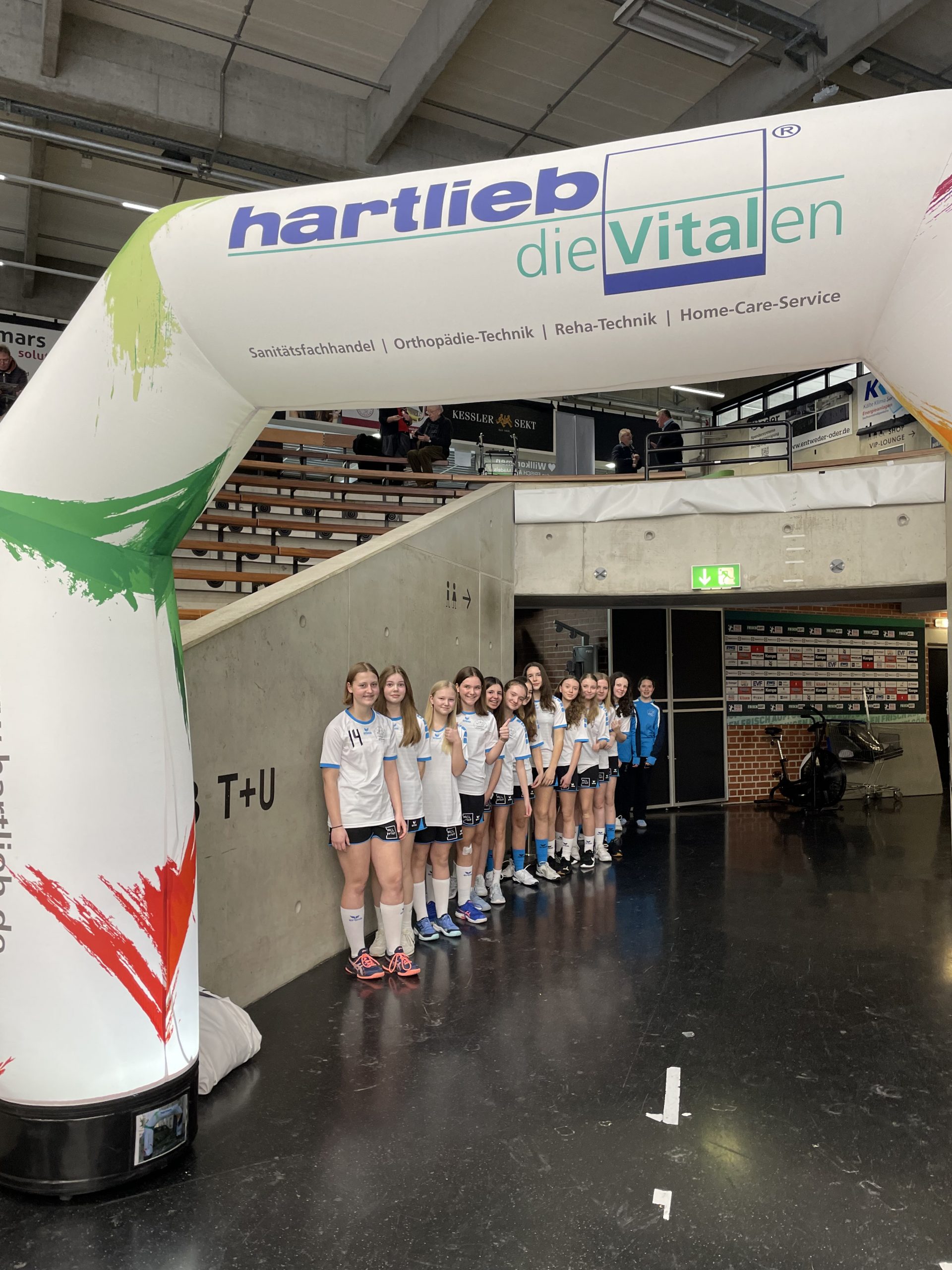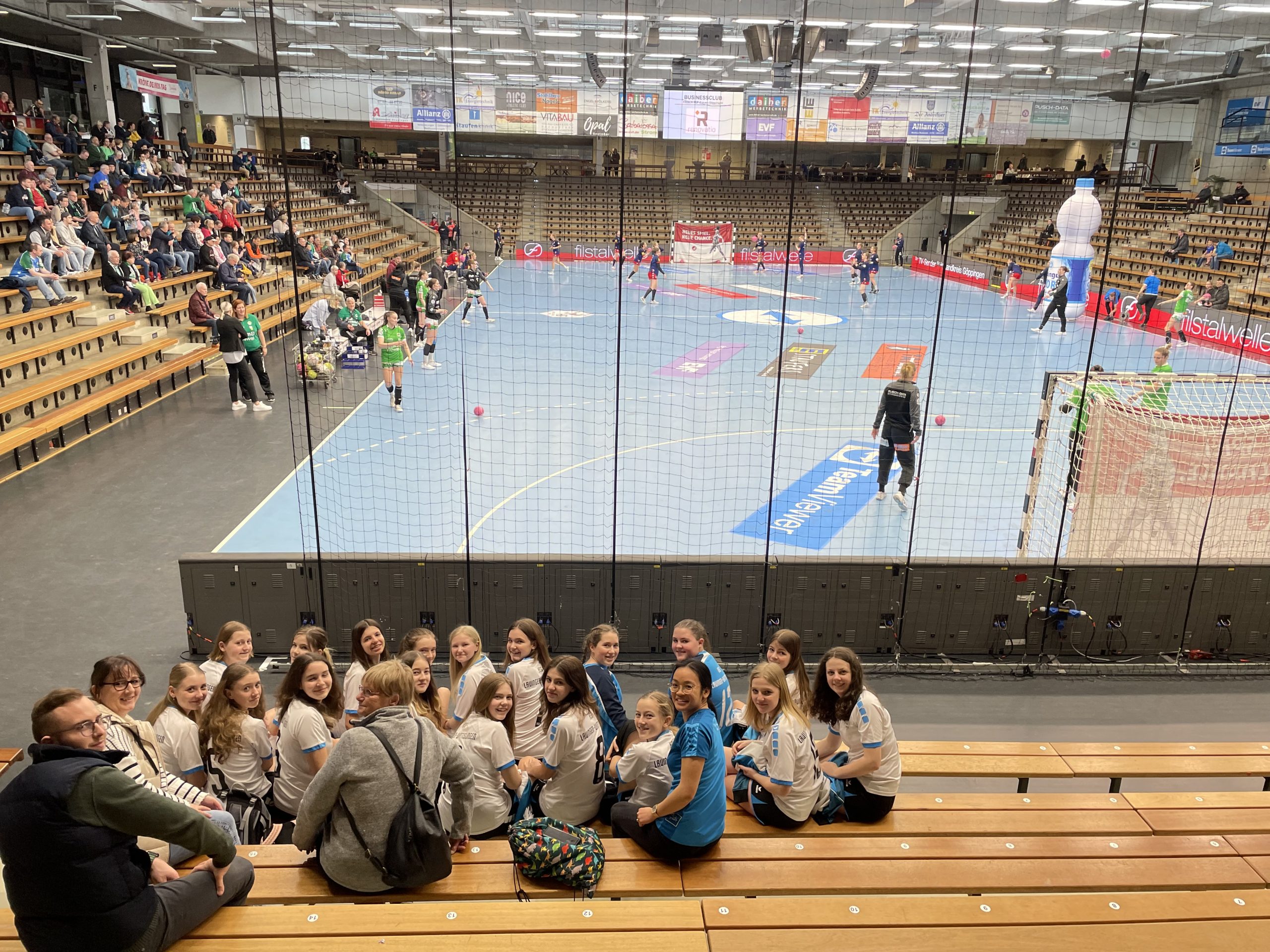 Das Trainerteam hatte sich für diese Leistung etwas ganz besonderes einfallen lassen. Am 19.03.2023 ging es mit dem Bus zum Heimspiel der Frisch!Auf Frauen Göppingen gegen den 1. FSV Mainz 05. Nach einem gemeinsamen Mittagessen ging es in die EWS-Arena, wo die Mädels sich umzogen und als Einlaufkinder fungierten. Die Eltern und Fans der weiblichen C-Jugend konnten das Einlaufen und Spiel von zuhause per Livestream verfolgen.